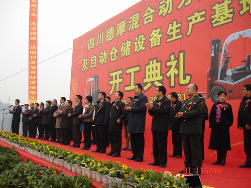 12月31日上午,四川德摩叉車及物流設(shè)備生產(chǎn)基地在城西工業(yè)園區(qū)舉行了開工典禮。市委書記唐利民、市長劉成鳴、政協(xié)主席陳宗淑,上海德摩機(jī)電(集團(tuán))有限公司執(zhí)行董事長鄭有為出席開工典禮。