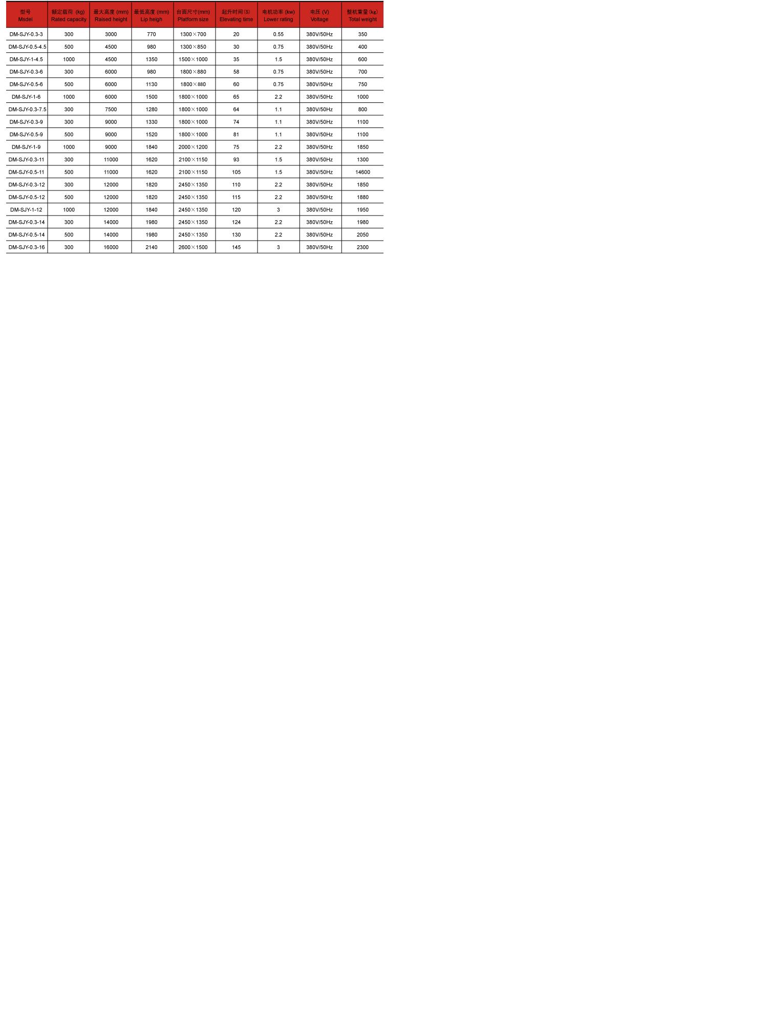 電動(dòng)升降平臺(tái)DM—DG_2.0 產(chǎn)品描述 電動(dòng)升降平臺(tái)主要用于車間、倉(cāng)庫(kù)各個(gè)工作擱層間貨物上下運(yùn)送,立體車庫(kù)和地下車庫(kù)層高間汽車舉升等, 產(chǎn)品液壓系統(tǒng)設(shè)置防墜、超載安全保護(hù)裝置,各樓層和升降臺(tái)工作面均可設(shè)置操作按鈕實(shí)現(xiàn)多點(diǎn)控制,產(chǎn)品結(jié)構(gòu)堅(jiān)固,承載量大,升降平穩(wěn),安裝維護(hù)簡(jiǎn)單方便,是經(jīng)濟(jì)實(shí)用的低樓層間替代電梯的理想貨物輸送設(shè)備,